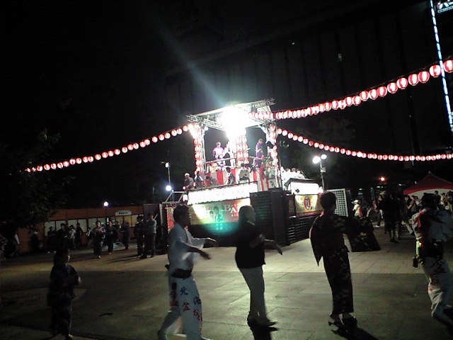 なんと、通り公園で盆祭りをやってるではないかっ!