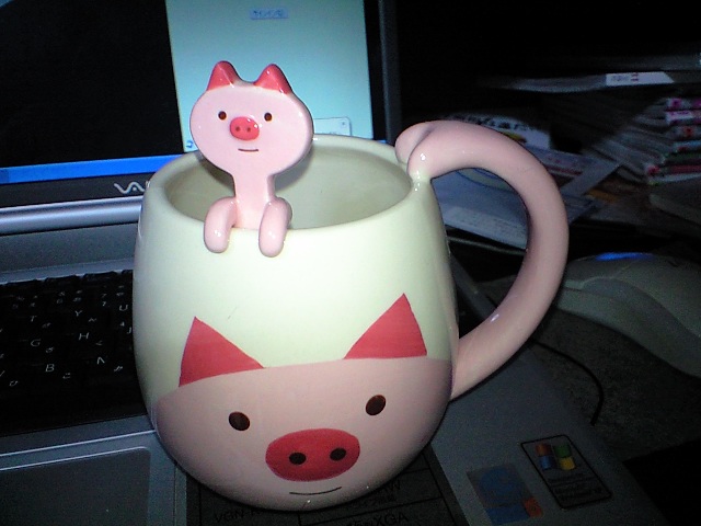 マグカップにブラさがってるブタはスプーンになってるんだよっ(・∀・)ノ
