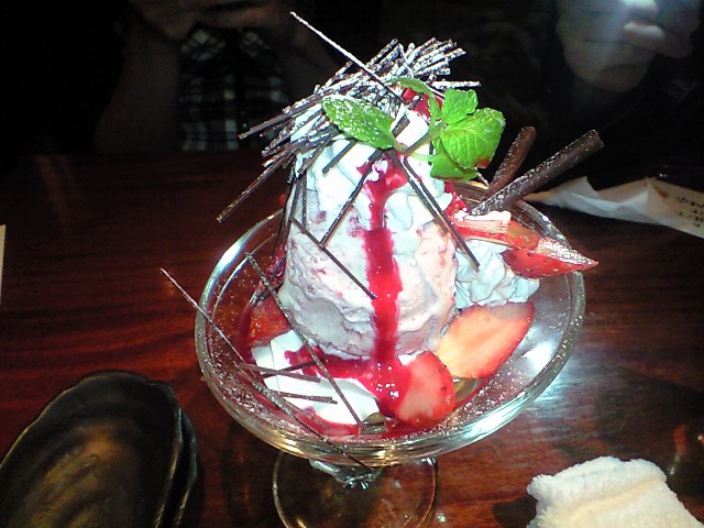ユッキーが食した「イチゴのパフェ」。