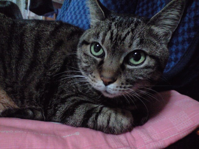 エムちゃぁ~んは、いつものイスの上でヌクヌクしてました。